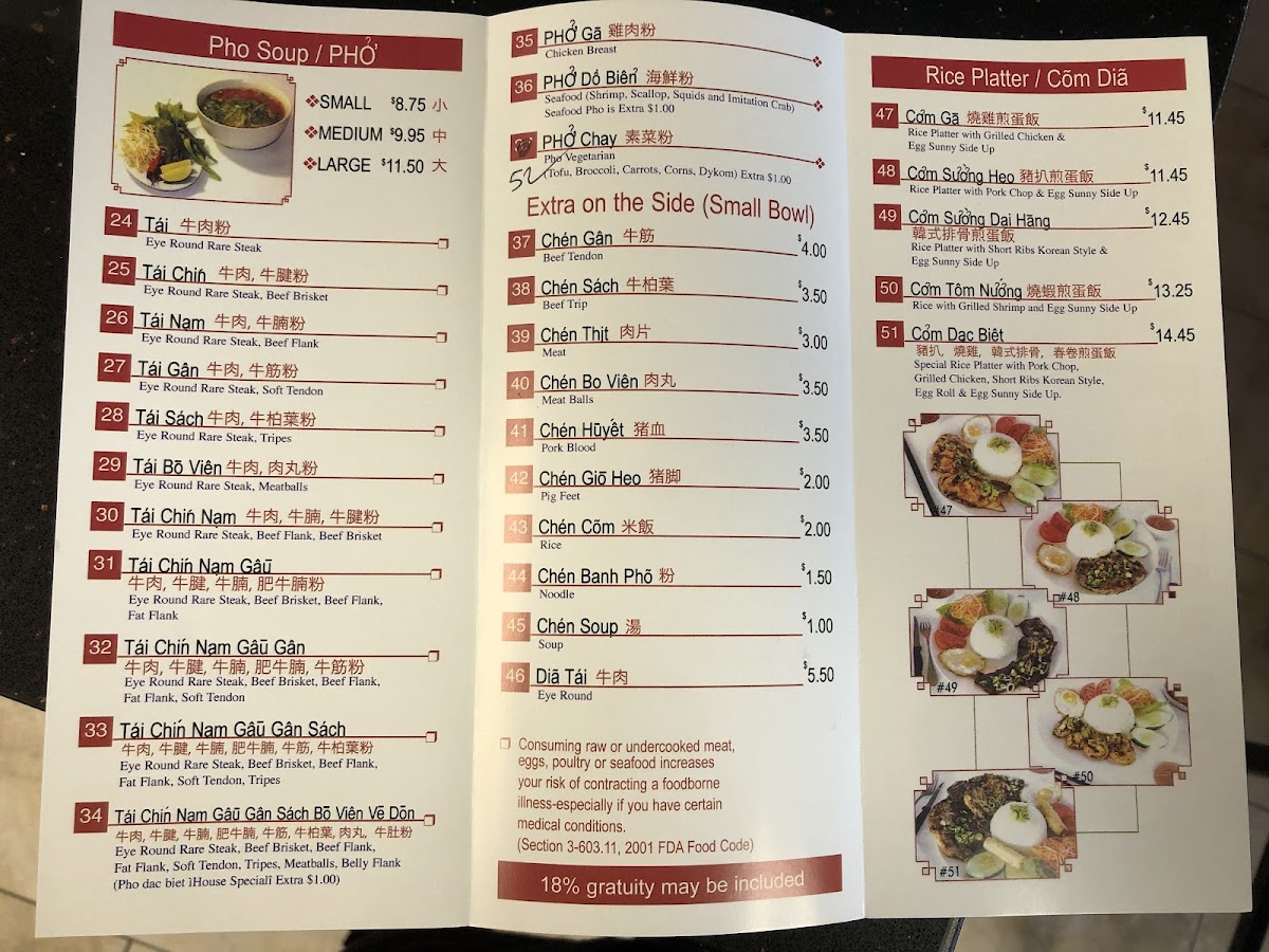 Starting with their standout dishes, the menu features savory pho, made with aromatic broth that warms the soul. For those seeking a sweet treat, their boba teas, such as Thai Tea and Honeydew, are creamy, flavorful, and perfectly complemented by chewy tapioca pearls.